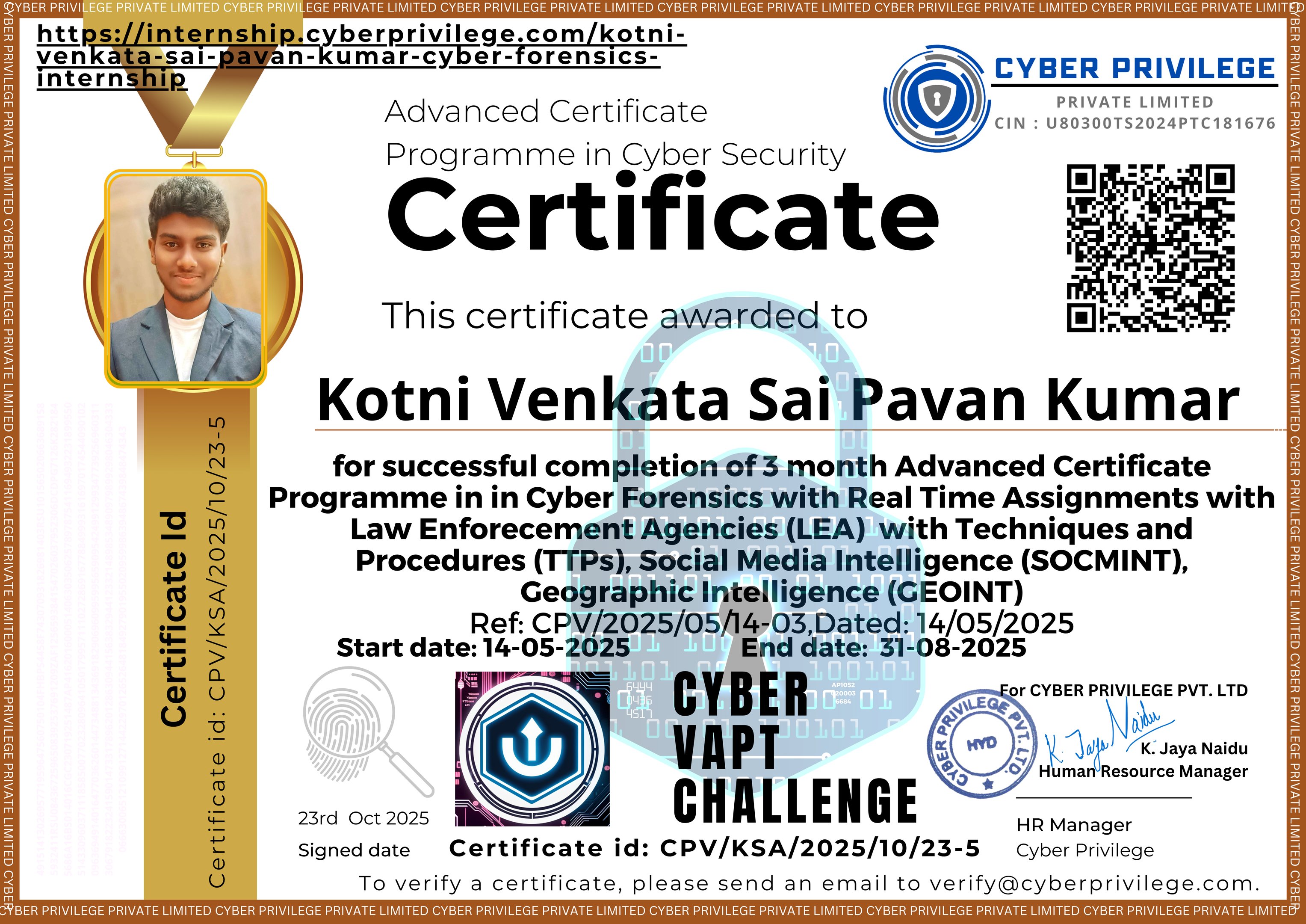 Cyber Security & Cyber Forensic Internship with SOCMINT, GEOINT