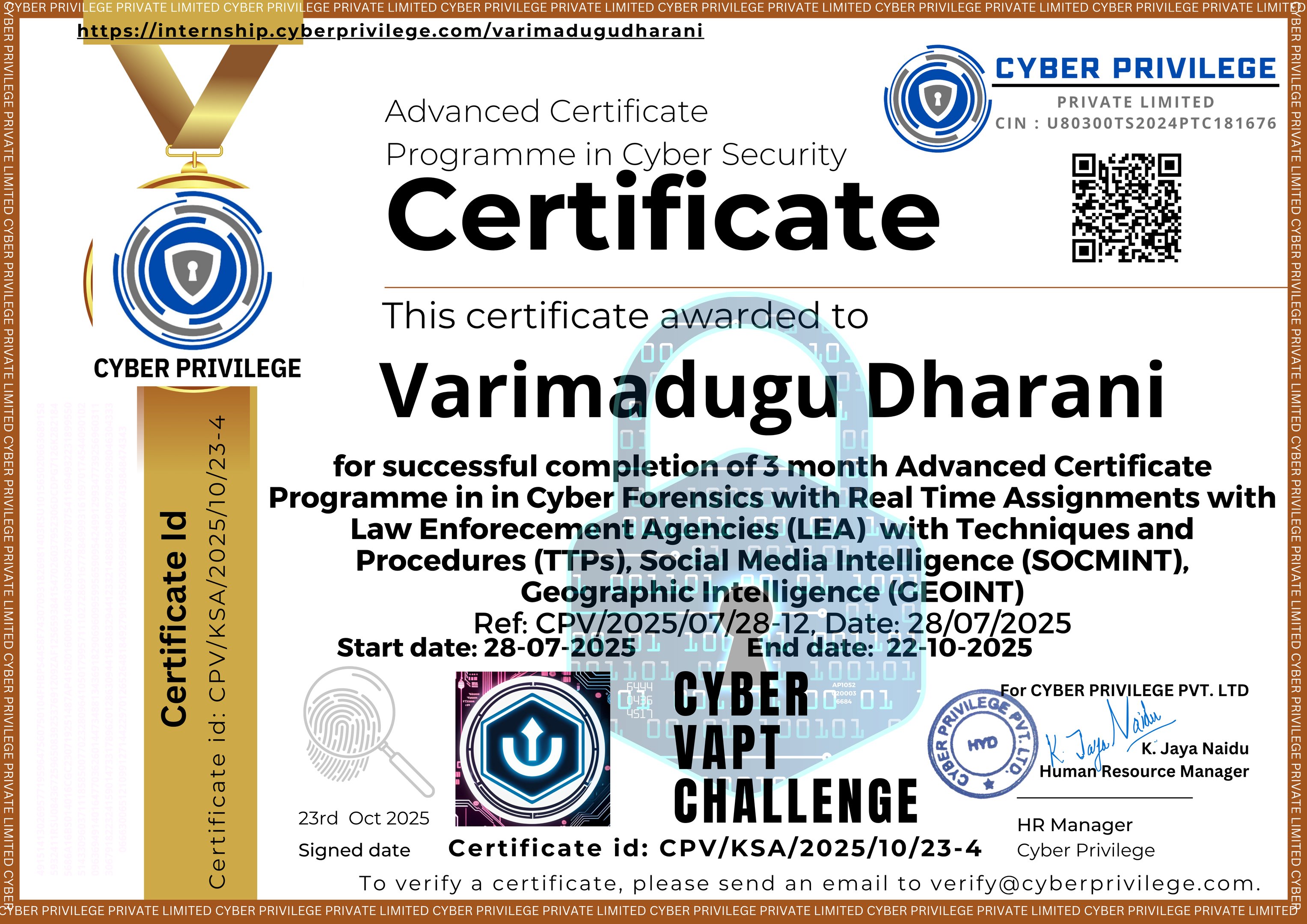 Cyber Security & Cyber Forensic Internship with SOCMINT, GEOINT